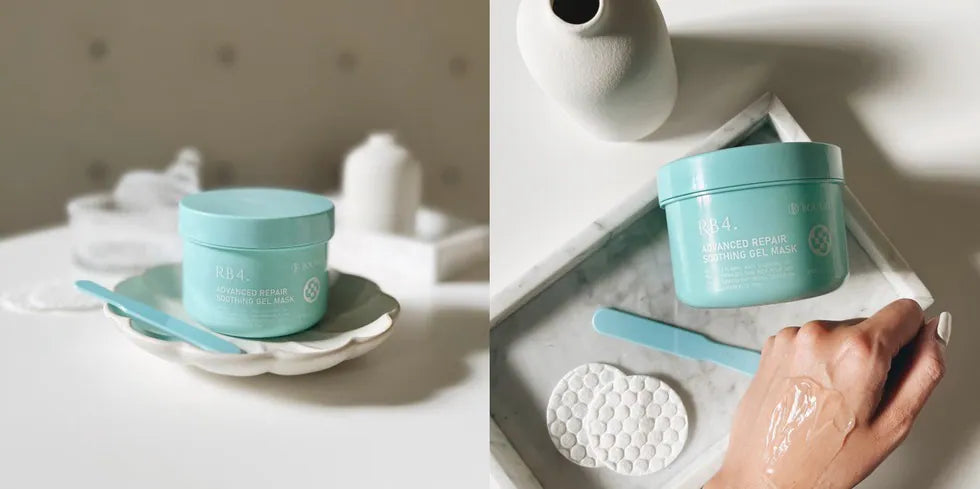 回家後會先厚敷一層冰冰涼涼的RB4綠凍膜讓臉先冷靜下來,退紅+舒緩先處理。