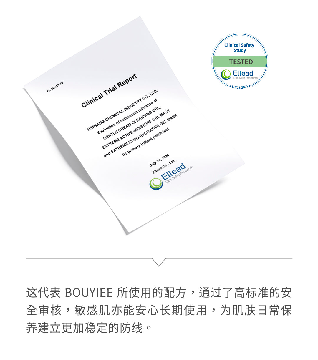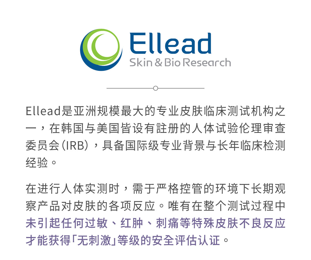 受测者皆于临床试验中通过「零敏感」与「无刺激反应」评估,显示产品在测试条件下具备良好的肌肤耐受性。然而,每个人的肌肤状况与体质皆有所不同,仍有可能因个别差异产生过敏或不适,实际使用时请依个人肌肤状况酌量判断。