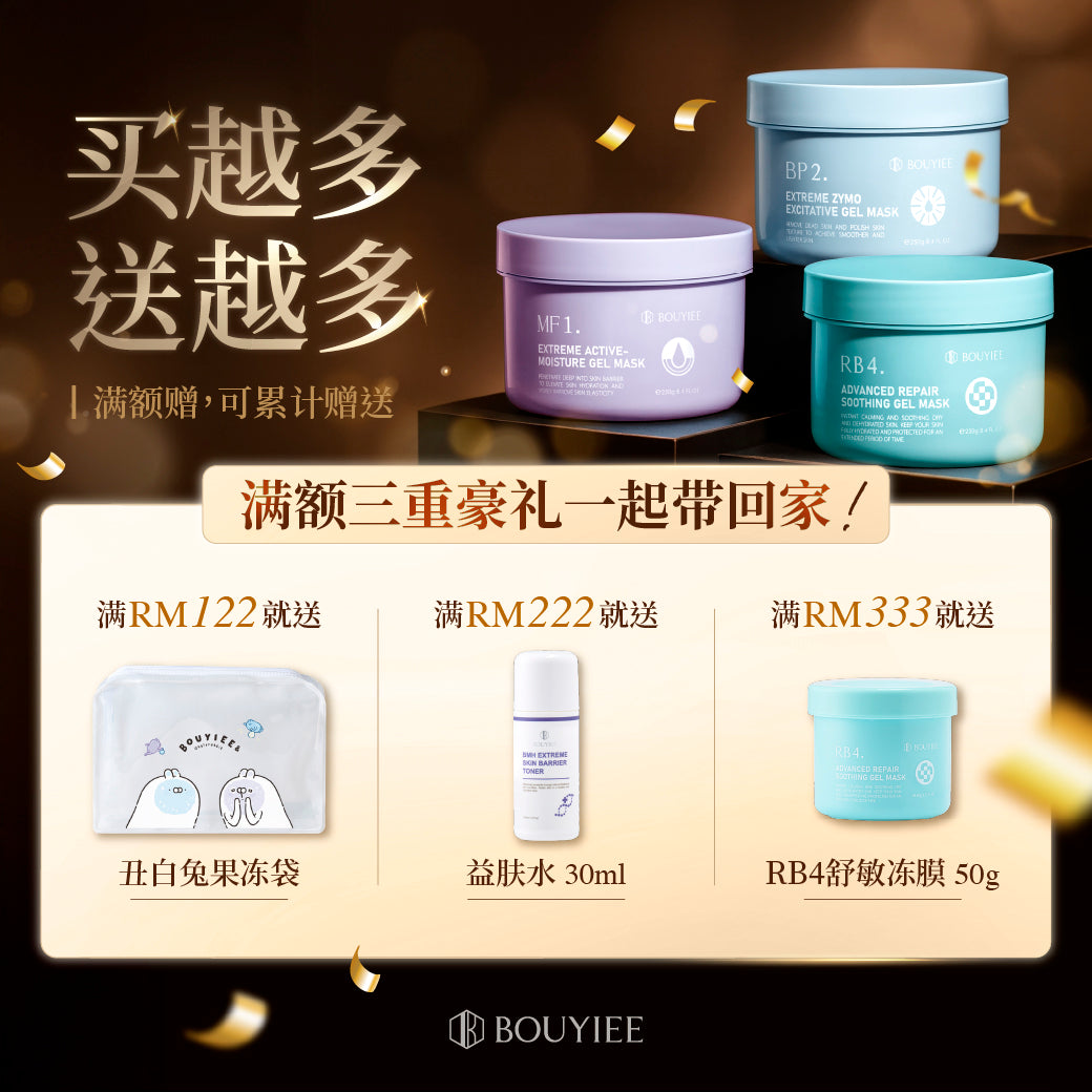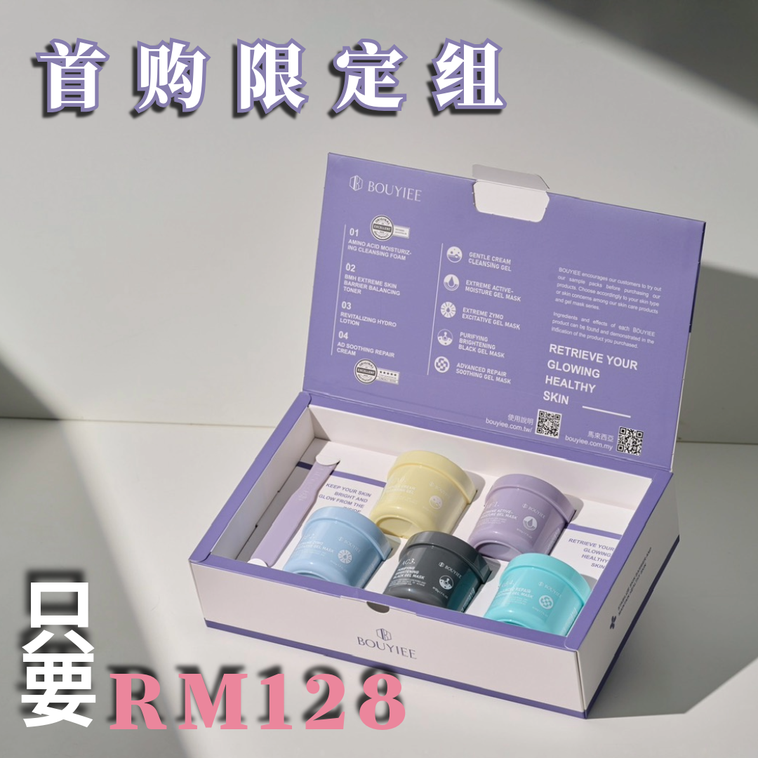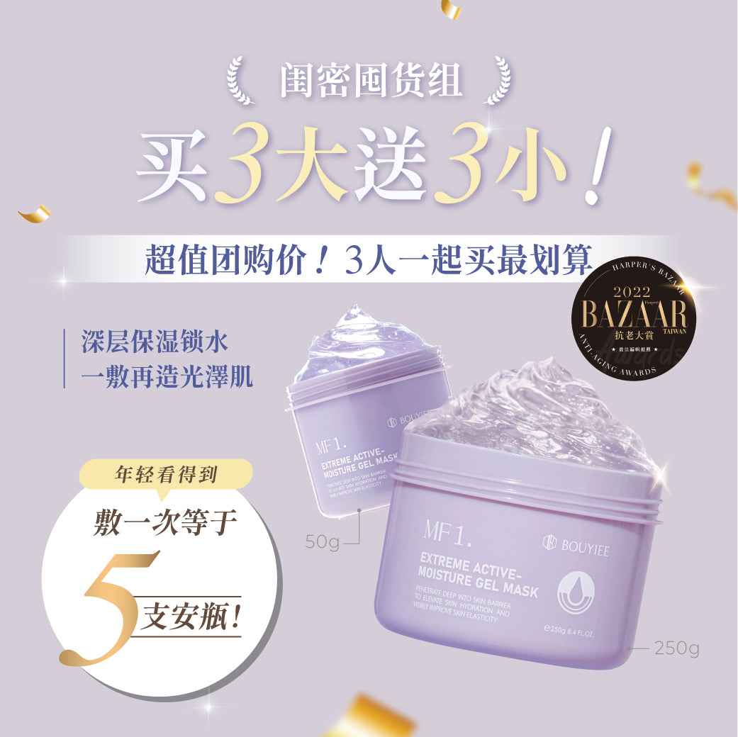 全效救肤冻膜 敷一次BOUYIEE宝艺冻膜 = 导入5支安瓶精华,一抹就能在肌肤表面形成轻盈锁水膜,直达肌底持续注入赋活成份,短时间提升肤况超有感! 全龄肌肤适用,简单安心高效,坚持无添加6大伤肌成份。